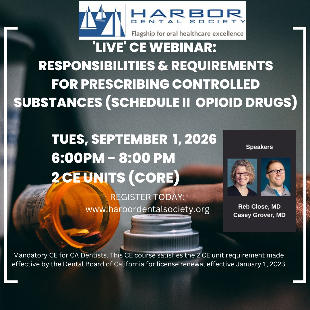 Mandatory CE course for CA Dentists: Responsibilities and Requirements for Prescribing Controlled Substances (Schedule II Opioid Drugs)